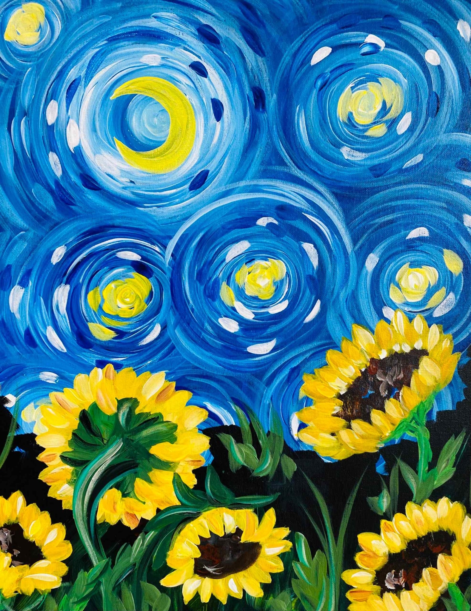 Come get creative with us, and join us at our studio for step-by-step simple instructions on how to recreate this beautiful painting while you sip on your favorite beverage, in a relaxed and fun, artsy environment.