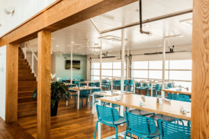 The menu features a mix of fresh seafood, steaks, burgers, and classic American favorites, along with a full-service bar offering cocktails, beer, and wine. During the warmer months, guests can enjoy outdoor seating with lake views, making it a popular stop for sunset dinners, social gatherings, and seasonal events.
